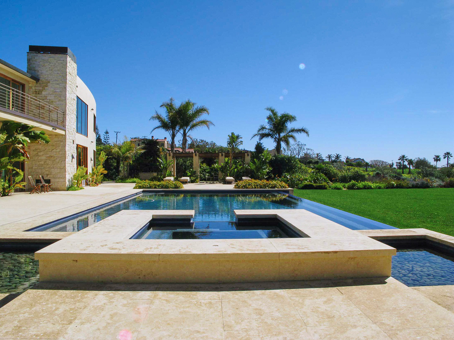 Say “I do” awe inspiringly in front of your friends and family, but still keep that privacy with the elegance that Malibu Estate 38 offers. A modern home with Mediterranean elements, this mansion expands out to an extravagant lawn where your ceremony will take place. The entirety of this area is hedged by finely polished landscaping of palm trees, evergreens, color-filled shrubs, and more tropical feels. Beyond this green beauty, a photographic view of the Malibu beach wraps around the entire estate.